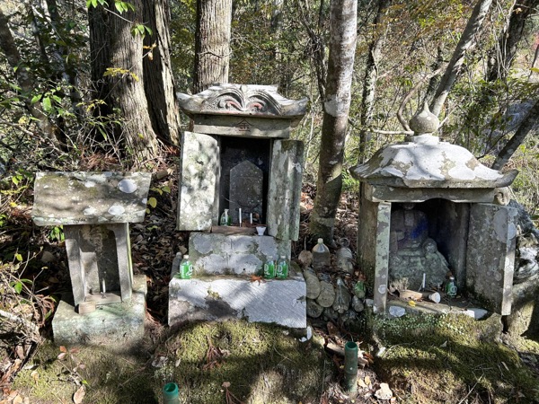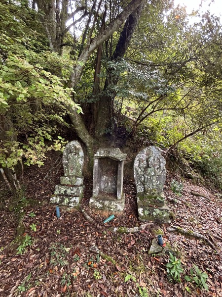 風戸山への渓谷(谷口川)を登っていくと岩壁の隙間に埋め込まれるように八十八体の石仏が立っていて壮観である。その岩陰にお大師様を祀る太子堂が佇む。