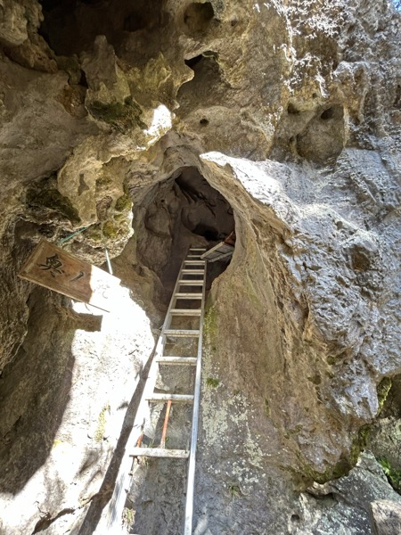 岩壁中程に人が座れるほどの狭い洞窟がある。佐藤鶴谷は「有徳の高僧が絶壁を穿ち数体の石仏を安置した可能性がある」と旧中野村史に記している。佐伯藩の碩学明石秋室は五言律詩「仏譚」を詠んでいる。